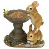 Adorable bird feeder features two bunnies and a friendly bird. The small size makes it fit anywhere, even in a small space. This charming display is beautifully detailed. Bird seed not included. Weight 2.6 pounds 10 x 6.5 x 10.5 inches tall Polyresin